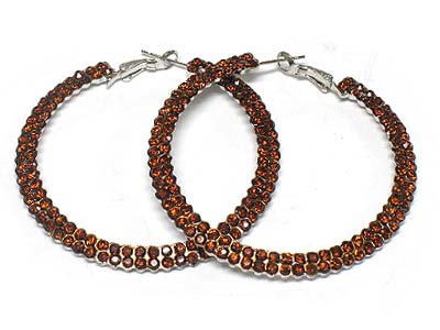 WHOLESALE DUAL LINE CRYSTAL DECO METAL HOOP EARRING - HOOPS 332984