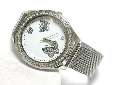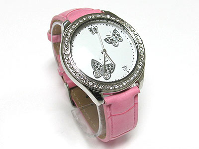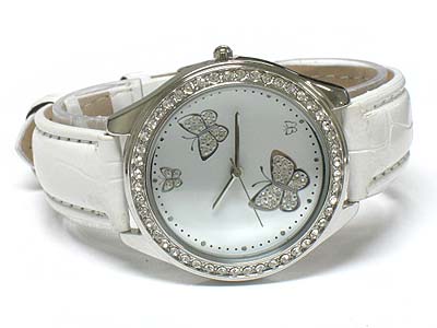 Crystal butterfly pattern leather band watch