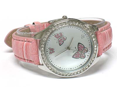 WHOLESALE CRYSTAL BUTTERFLY PATTERN LEATHER BAND WATCH 333013