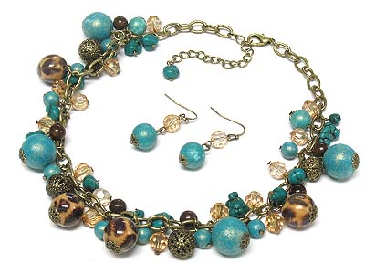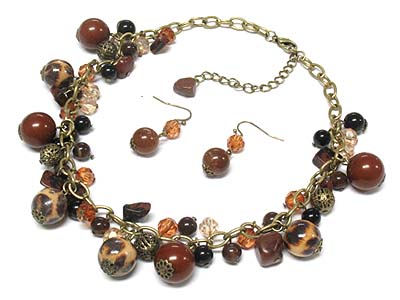 WHOLESALE MULTI ANIMAL PATTERN BEAD AND ACRYL BEAD NECKLACE AND EARRING SET 333037