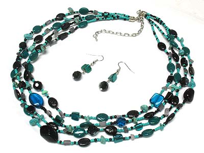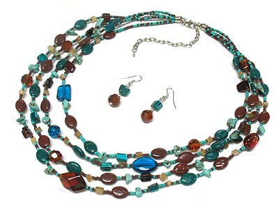 Multi row mix beads necklace and earring set