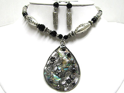 WHOLESALE CRYSTAL COLOR STONE DECO METAL OVAL PENDANT NECKLACE AND EARRING SET 333128