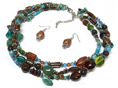 WHOLESALE MULTI STRAND AND MIX BEADS NECKLACE AND EARRING SET 333208