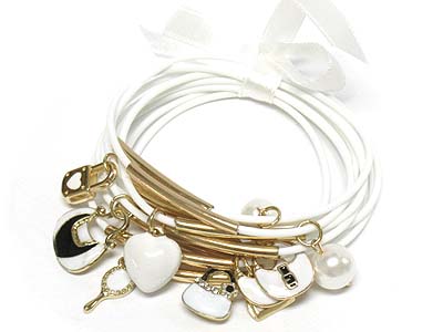WHOLESALE MULTI STRAND AND CRYSTAL DECO CHARM BRACELET WITH RIBBON 333341
