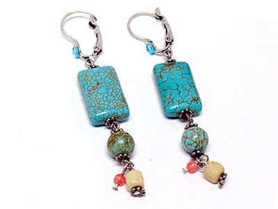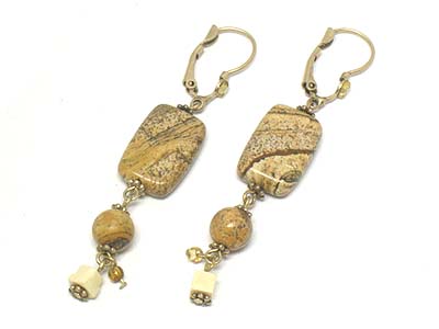 WHOLESALE PATINA SQUARE STONE AND NATURAL STONE DROP EARRING 333579