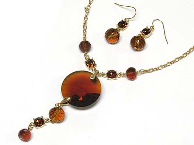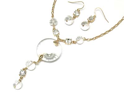 Round facet cut acryl stone and crystal dangle necklace and earring set