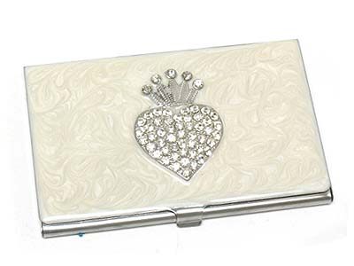 WHOLESALE CRYSTAL STONE HEART AND CROWN BUSINESS CARD HOLDER 333643