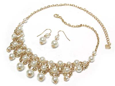 Boutique style glamour pearl beads necklace and earring set