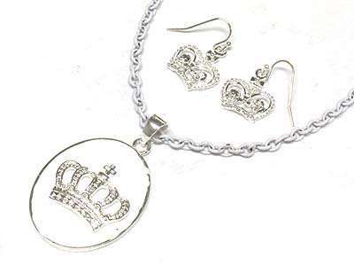 WHOLESALE CROWN DECO OVAL EPOXY PENDANT NECKLACE AND EARRING SET 333679