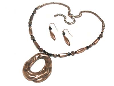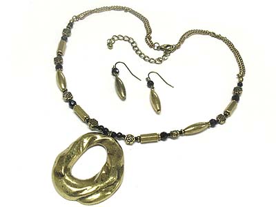 Metal donut pendant and acryl bead deco double strands necklace and earring set