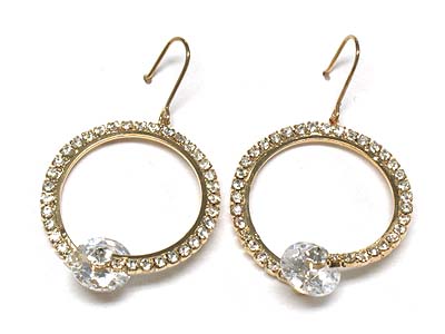 Rhinestone deco hoop and large cubic earring - hoops