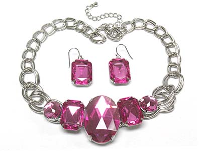 WHOLESALE BIG GLASS STONE CRYSTAL DECO CHAIN NECKLACE AND EARRING SET 334010