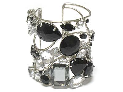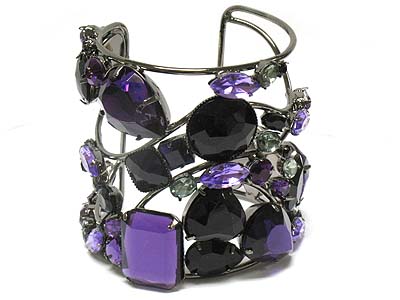 Multi shape acryl and cubic and crystal deco metal long bangle