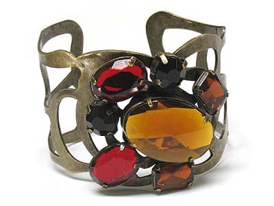 Multi shape crystal and big glass stone deco metal bangle
