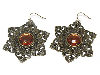WHOLESALE CASTING METAL FLOWER SHAPE ACRYL STONE DECO EARRING 334048