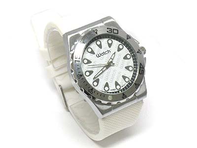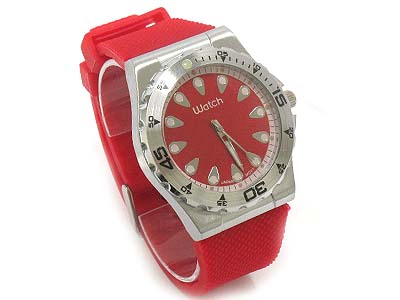 WHOLESALE DIVER STYLE RUBBER BAND METAL ROUND FACE WATCH 334089