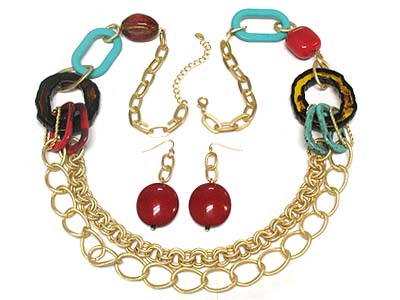 Large resin donut and acryl link large chain double strand necklace and earring set