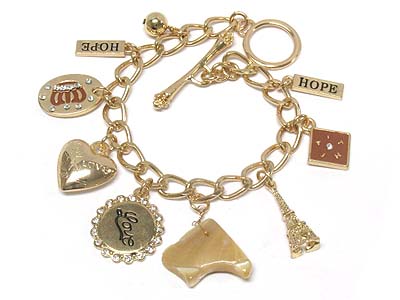 WHOLESALE CRYSTAL DECO MULTI SHAPE CHARM TOGGLE BRACELET 334205