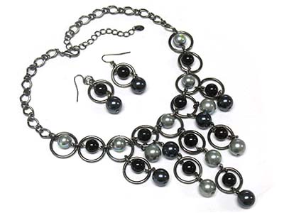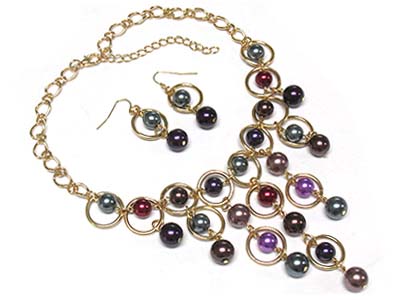 WHOLESALE MULTI PEARL DROP NECKLACE AND EARRING SET 334406