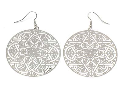 WHOLESALE METAL FILIGREE ABSTRACT SHAPE ROUND DISK EARRING 334417