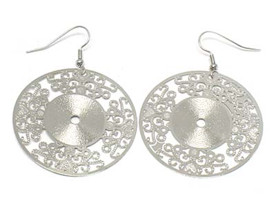 WHOLESALE METAL FILIGREE ABSTRACT SHAPE ROUND DISK EARRING 334419