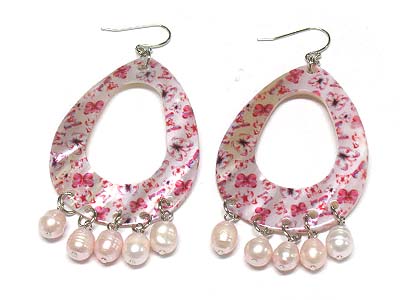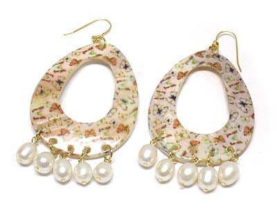 WHOLESALE MULTI BUTTERFLY PATTERN SHELL AND MULTI PEARL BEAD CHARM EARRING 334764