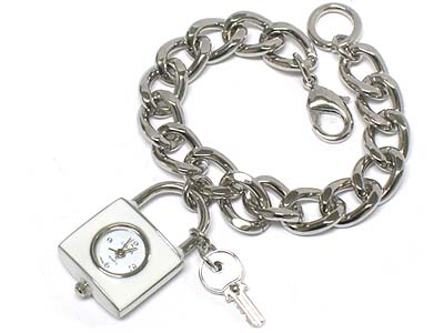 Padlock and key fashion toggle brass chain watch
