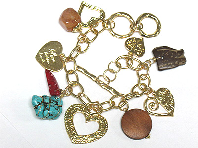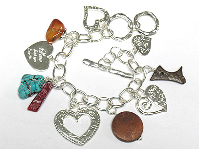 WHOLESALE MULTI CASTING HEART AND WOOD AND NATURAL STONE CHARMS TOGGLE BRACELET 334918