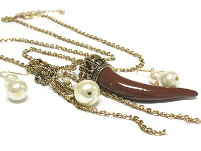 WHOLESALE CROWNED TUSK AND KEY AND DOUBLE STRAND DROP CHARMS NECKLACE AND EARRING SET 334979