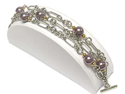 WHOLESALE PEARL BEADS LINK TRIPLE CHAIN TOGGLE BRACELET 334988