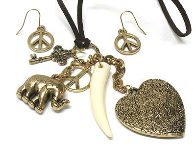 WHOLESALE CASTING HEART AND ELEPHANT AND TUSK CHARM NECKLACE AND EARRING SET 334991