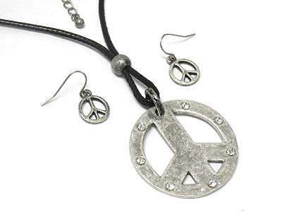Crystal stud peace pendant adjustable bead strand necklace and earring set