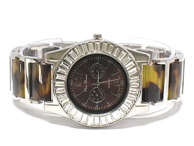 WHOLESALE BARGUETTE CRYSTAL ROUND FACE AND MARBLIC BAND LINK WATCH 335075