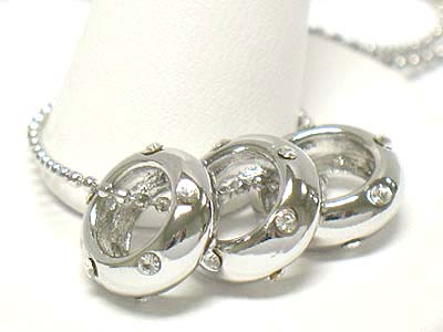 WHOLESALE MADE IN KOREA WHITEGOLD PLATING CRYSTAL STUD TRIPLE RING PENDANT NECKLACE 335186