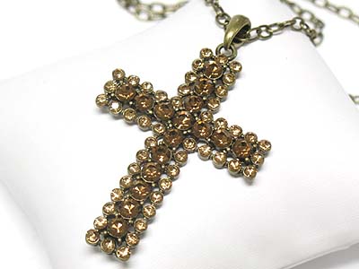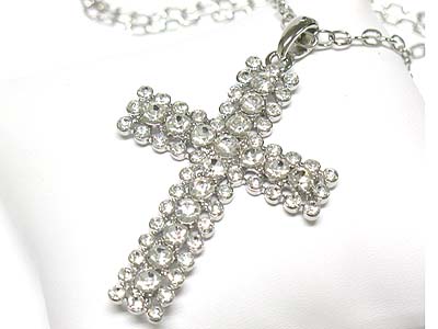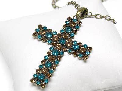 WHOLESALE CRYSTAL STONE STUD CROSS PENDANT NECKLACE 335314