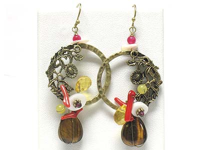 Natural stone and multi bead charm casting metal ring earring