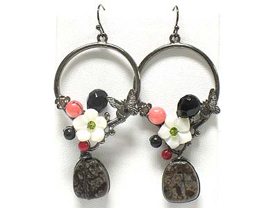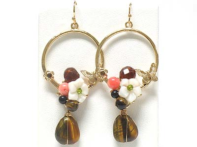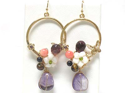 WHOLESALE NATURAL STONE DROP FLOWER AND BUTTERFLY PATTERN EARRING 335590