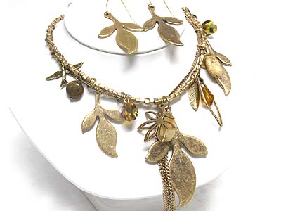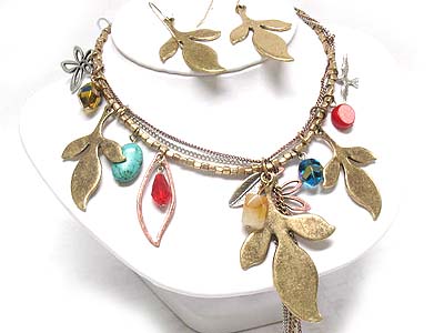 WHOLESALE MULTI LONG STRAND CHARMS AND BEADS DECO NECKLACE AND EARRING SET 335661