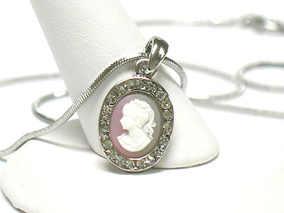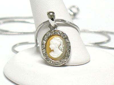 Made in korea whitegold plating crystal frame small cameo pendant necklace