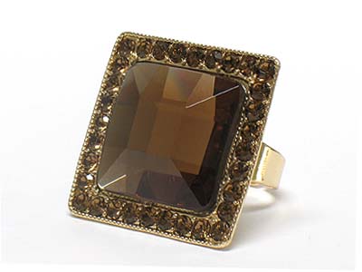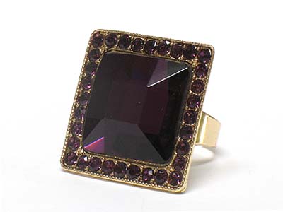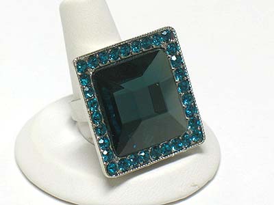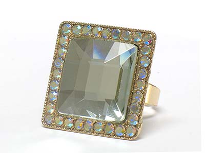 WHOLESALE CRYSTAL SIDE DECO LARGE SQUARE STONE STUD RING 335738