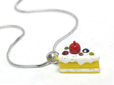 WHOLESALE MADE IN KOREA WHITEGOLD PLATING CRYSTAL STUD MINIATURE PIECE OF CAKE NECKLACE 335955