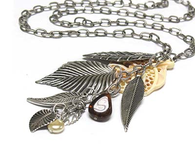 WHOLESALE MULTI SIZE METAL LEAVES LONG CHARM NECKLACE 336007