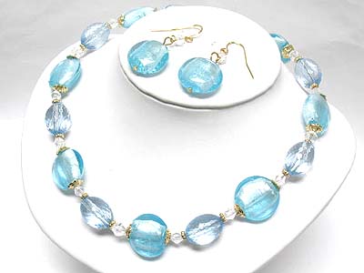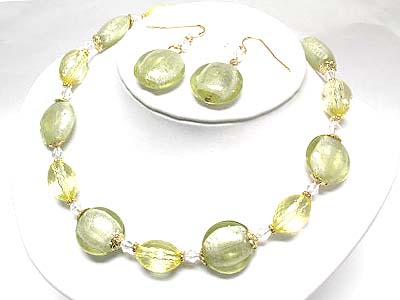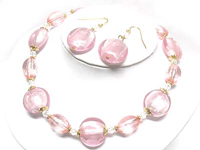 WHOLESALE PASTEL TONE MULTI GLASS BEADS LINK NECKLACE AND EARRING SET 336082