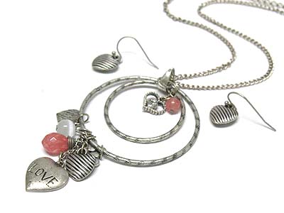WHOLESALE LOVE THEME DUAL ROUND PEANDAN AND BEDS AND STOND DANGLE NECKALE AND EARRING SET 336110