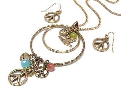 Peace theme dual round peandan and beds and stond dangle neckale and earring set