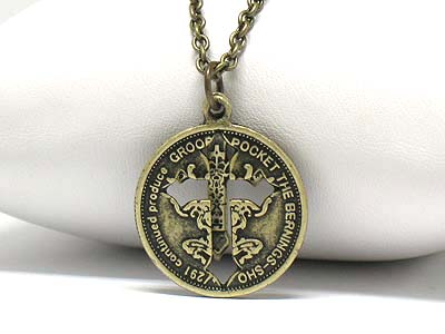 WHOLESALE ANTIQUE STYLE CROSS CUT COUT COIN PENDANT NECKLACE 336148