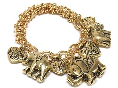 WHOLESALE MULTI ELAPHANT AND HEART CHARMS STRETCH BRACELET 336264