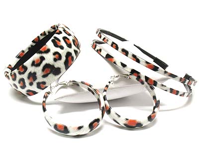 WHOLESALE LEOPARD PATTERN HAIRBAND AND BANGLE AND HOOP EARRING SET - HOOPS 336381