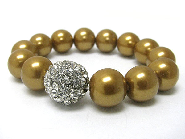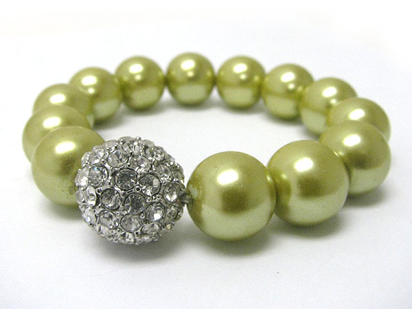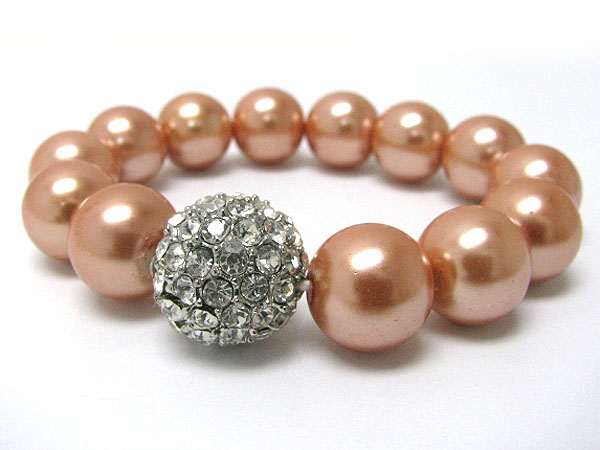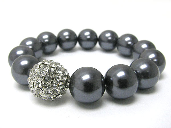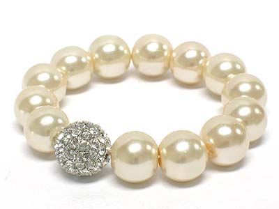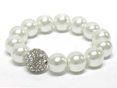 Pearl beads and crystal ball stretch bracelet