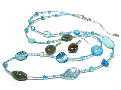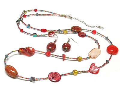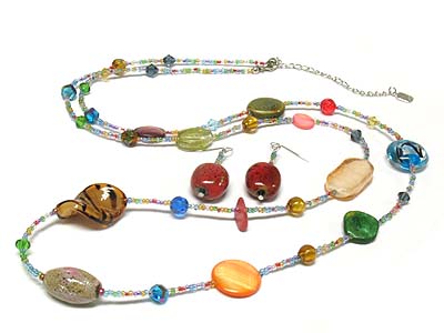 WHOLESALE MULTI SHAPE GLASS AND GERM STONE SEED BEADS NECKLACE AND EARRING SET 336605